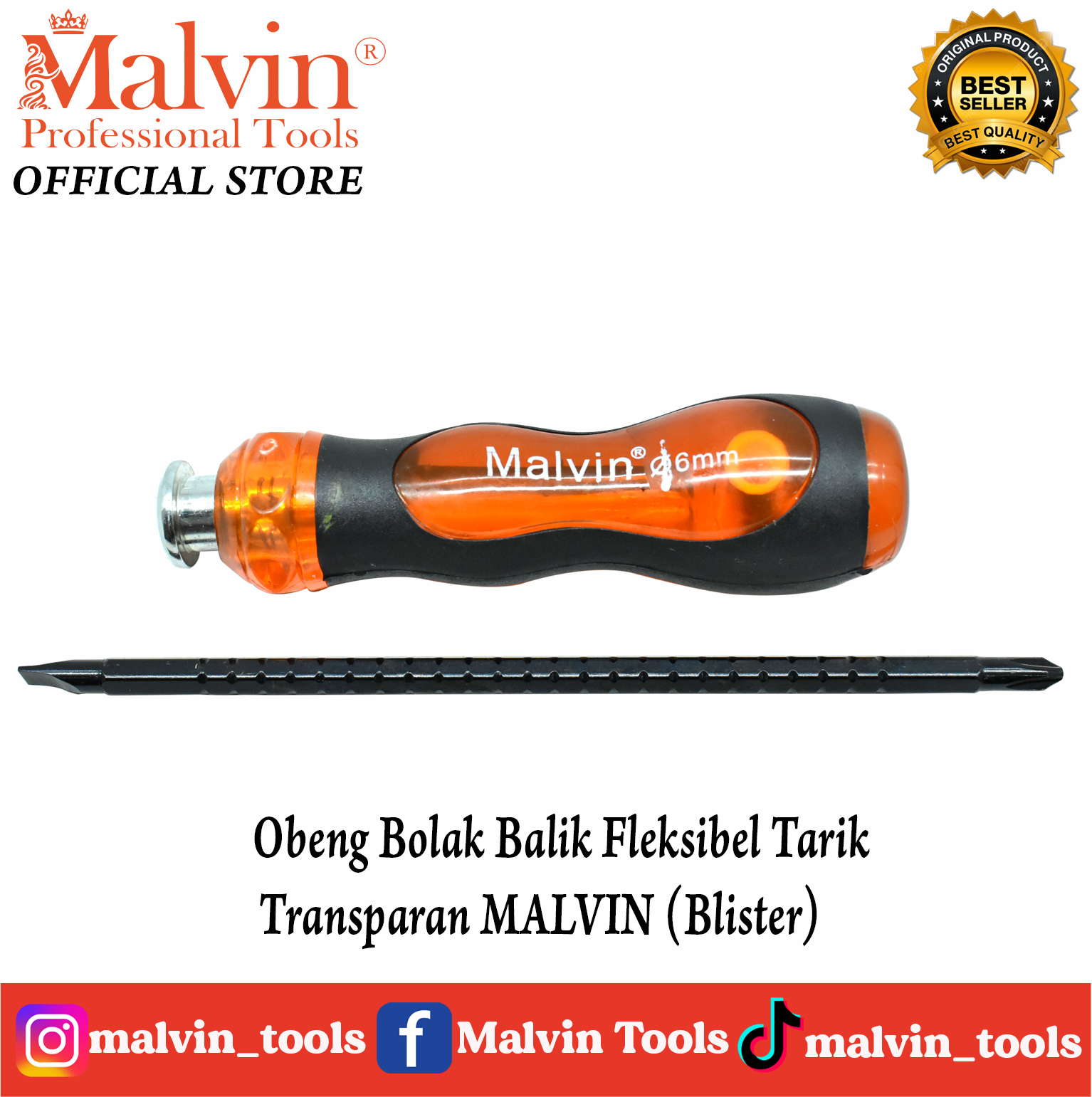 Obeng BB Fleksibel Tarik Transparan MALVIN (Blister)