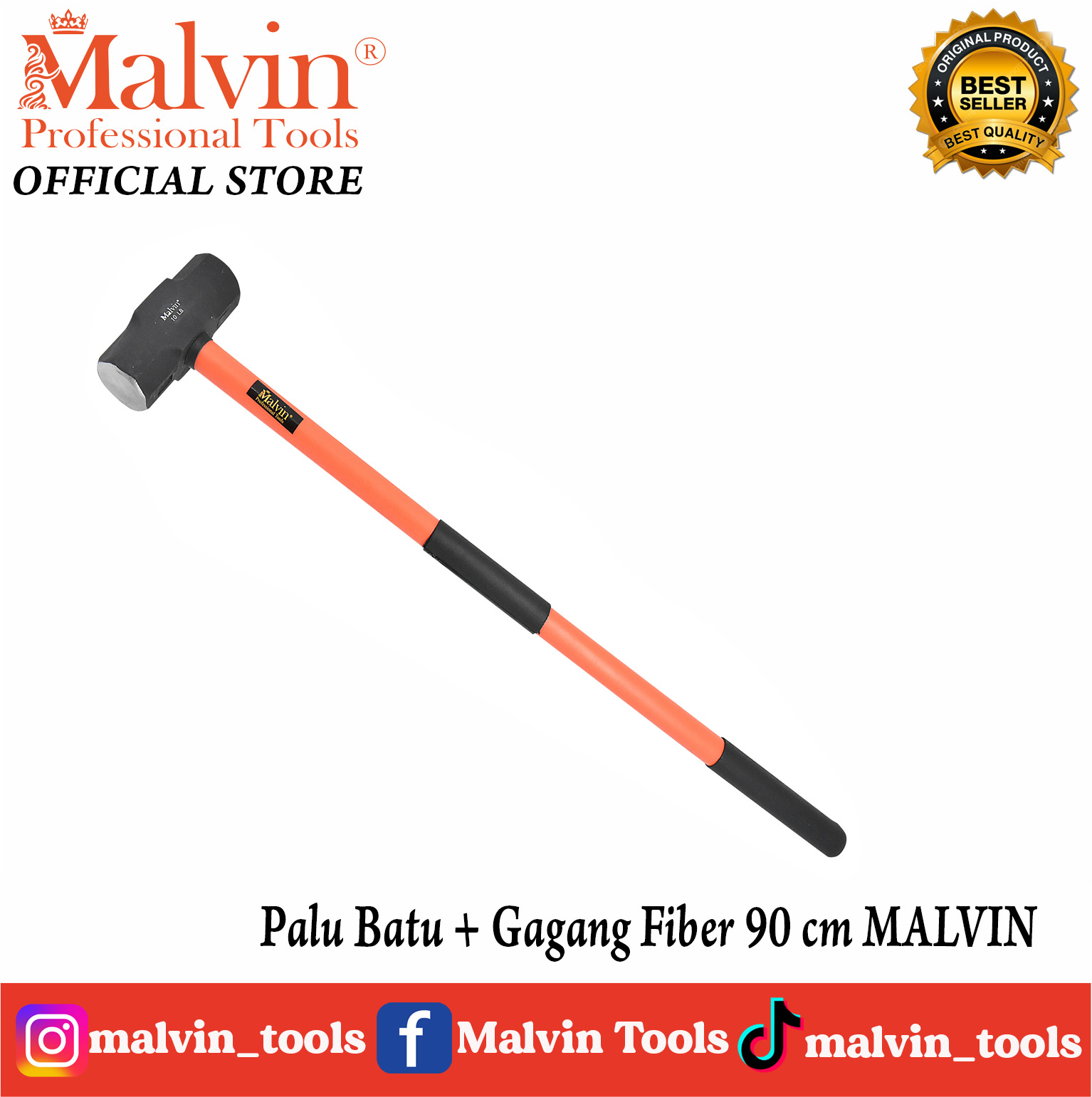 Palu Batu + Gagang Fiber 90 cm MALVIN